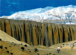 Upper Mustang consists of two distinct regions: the southern part and the northern where the languages, culture and traditions are alike to those of the Tibetan people. Mustang trek lying in the rain shadow of the Himalayas is perhaps the last enclave of pristine Tibetan culture. Forbidden & isolated from the rest of the World it was able to evolve its own distinctive culture and traditional which is so rich & unique. Lo-Mustang, the capital is walled city ruled by religious king. Untouched by modern civilization, life in Mustang goes on as it has for centuries in unhurried pace. As everywhere in the Himalayas, this area provides spectacular mountain scenery highlighted by Dhaulagiri at 8167 meters (26,795ft) and Annapurna I at 8091 meters (26,545ft). You will be surrounded by more than 35 mountains over 6000 meters (19,680ft) high. The elevation of the the trails rise from 2815 meters (9,233ft) to 3780 meters (12,398ft) above sea level.